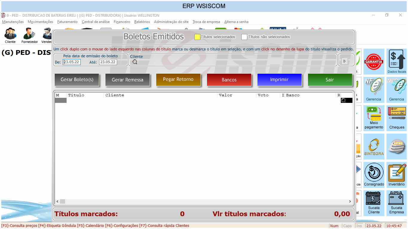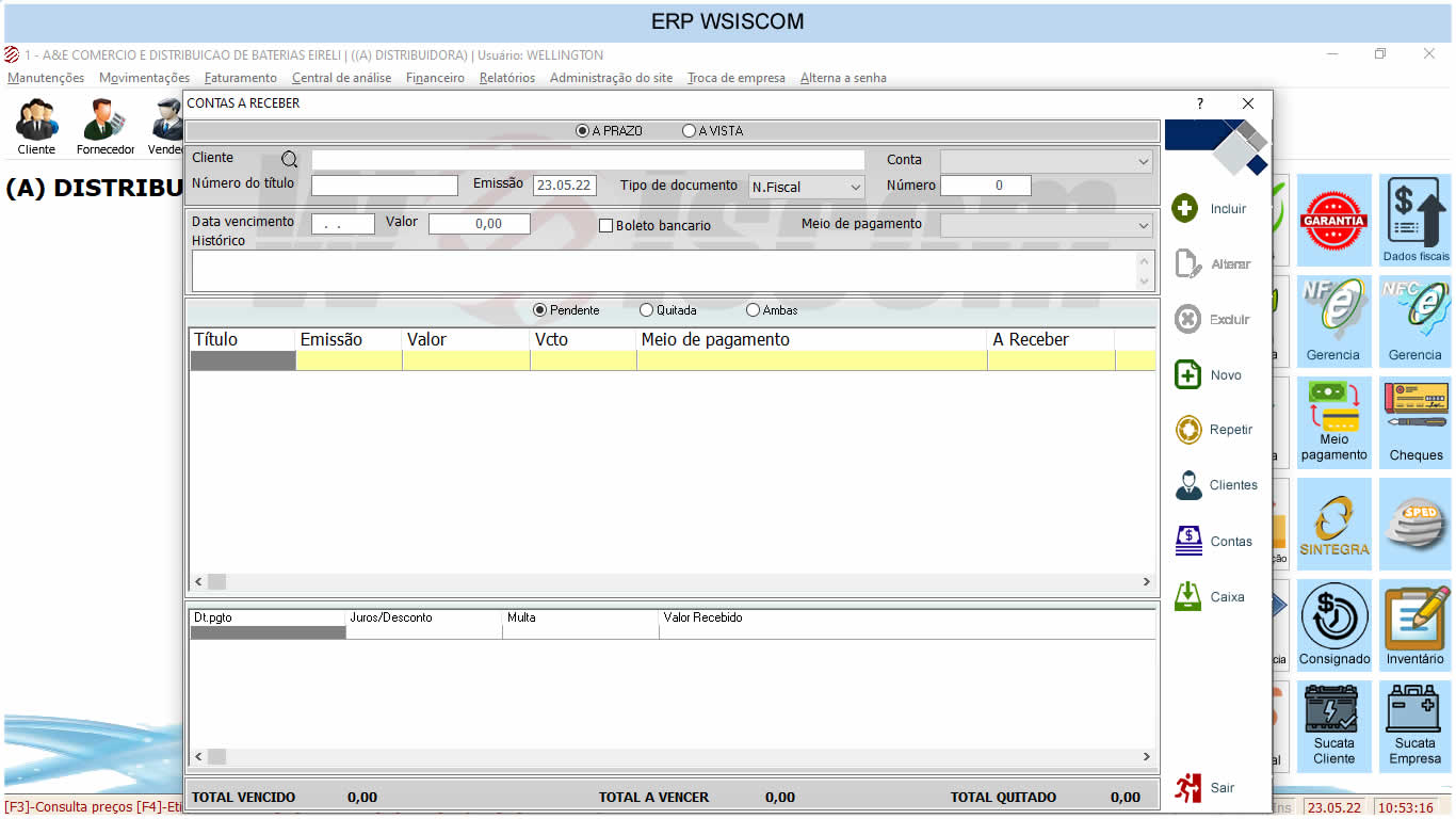 O SOFTWARE ERP WSISCOM ABRANGE TODAS AS NECESSIDADES DE UMA EMPRESA ESTOQUE, CONTAS A PAGAR E RECEBER, CAIXA, FATURAMENTO, BOLETOS, PIX, EMISSÃO DE NF-E, NFC-E E RELATÓRIOS DIVERSOS. ALGUNS RECURSOS COMO A GERAÇÃO DE ARQUIVOS EXCEL A PARTIR DOS RELATÓRIOS, A EMISSÃO DE BOLETO BANCÁRIO ON-LINE (API), A GERAÇÃO DE ARQUIVO PDF PARA AS NF-E E O ENVIO AUTOMÁTICO DO PDF E XML DA NF-E ENTRE OUTROs.